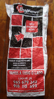 Aparentemente, parece um jornal, desses que todos os dias circulam gratuitamente com as principais notícias nacionais ou internacionais e puseram definitivamente os portugueses a ler. Olhando mais atentamente, pareceu-me um pequeno saco de farinha ou de cimento, sei lá!