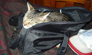 Cheguei cansado de tanto “berrar”, morder e esbracejar para me tirarem do cesto - acho que é indigno de um gato vir ali encolhido, vendo o mundo por umas grades . Mal cheguei instalei-me no primeiro saco que vi despejado e preguei uma soneca. É duro ser gato!